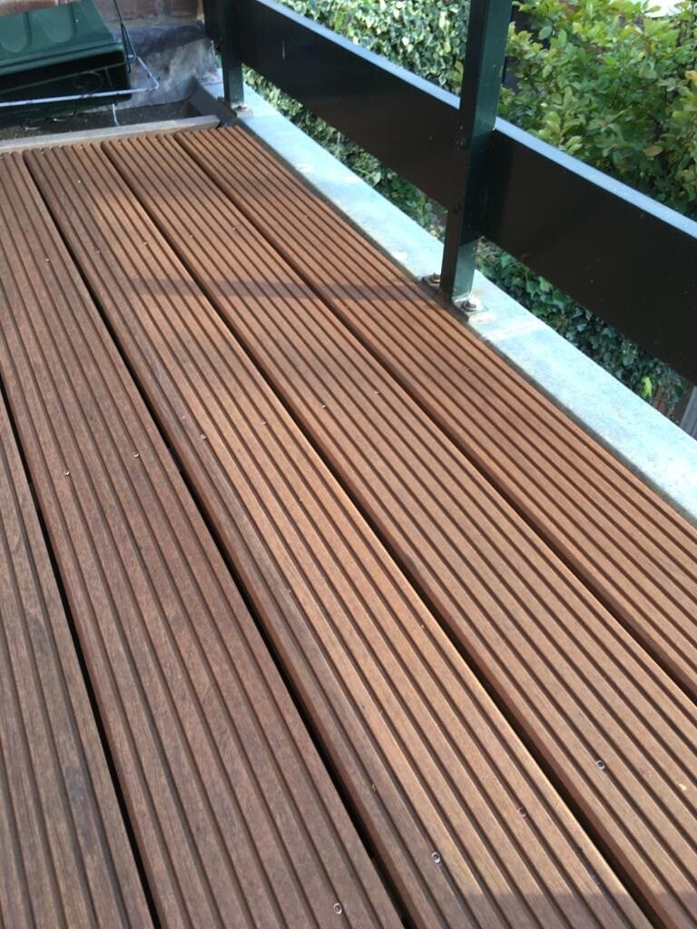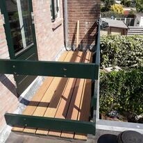 Plaatsen hardhouten planken op balkon
